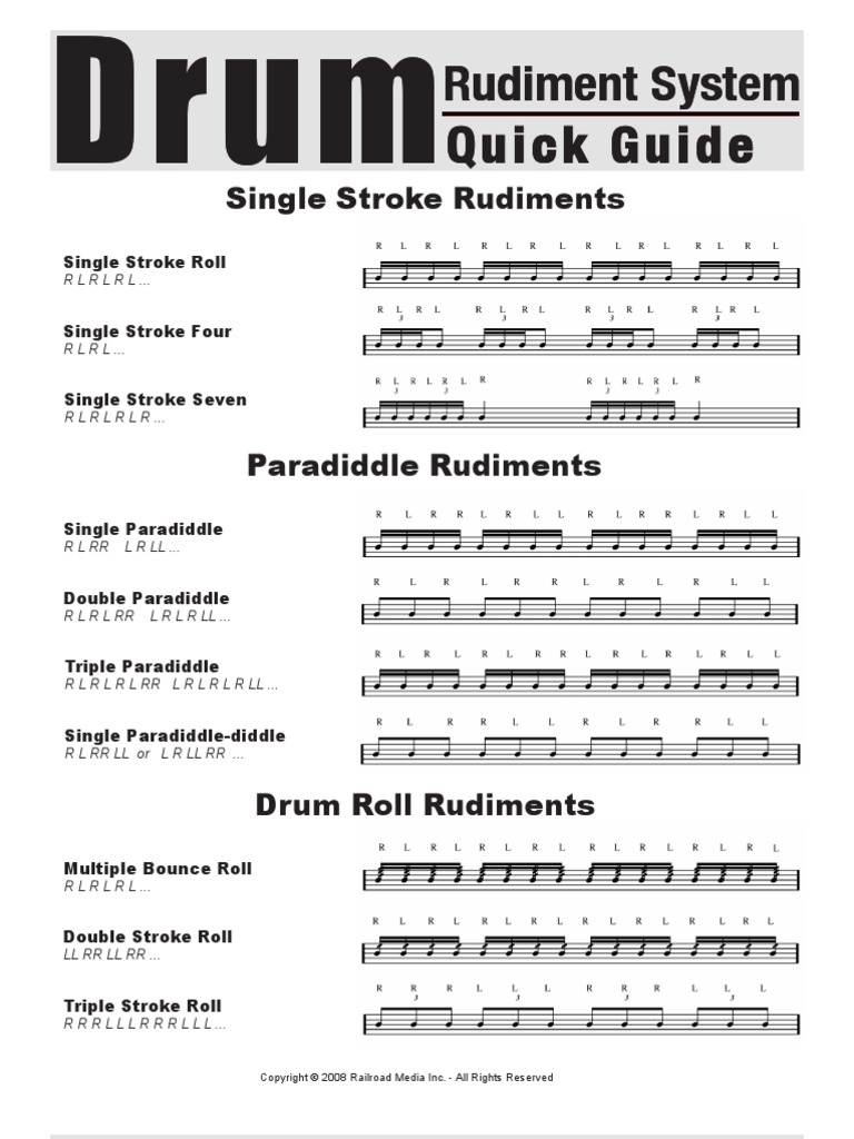Focus on proper technique. 128 HYBRID DRUM RUDIMENTS PDF. Beginners Guide to Drum Rudiments.